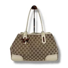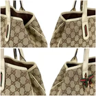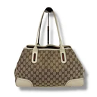This GUCCI GG tote is a stylish and practical choice despite some wear—perfect for everyday elegance. The spacious interior with two pockets keeps essentials organized, and the classic beige canvas with leather accents adds timeless appeal. The wear on corners and handles gives it a vintage charm, while the authentic serial number ensures peace of mind. Ships fast from Japan—great value for a luxury piece with character!