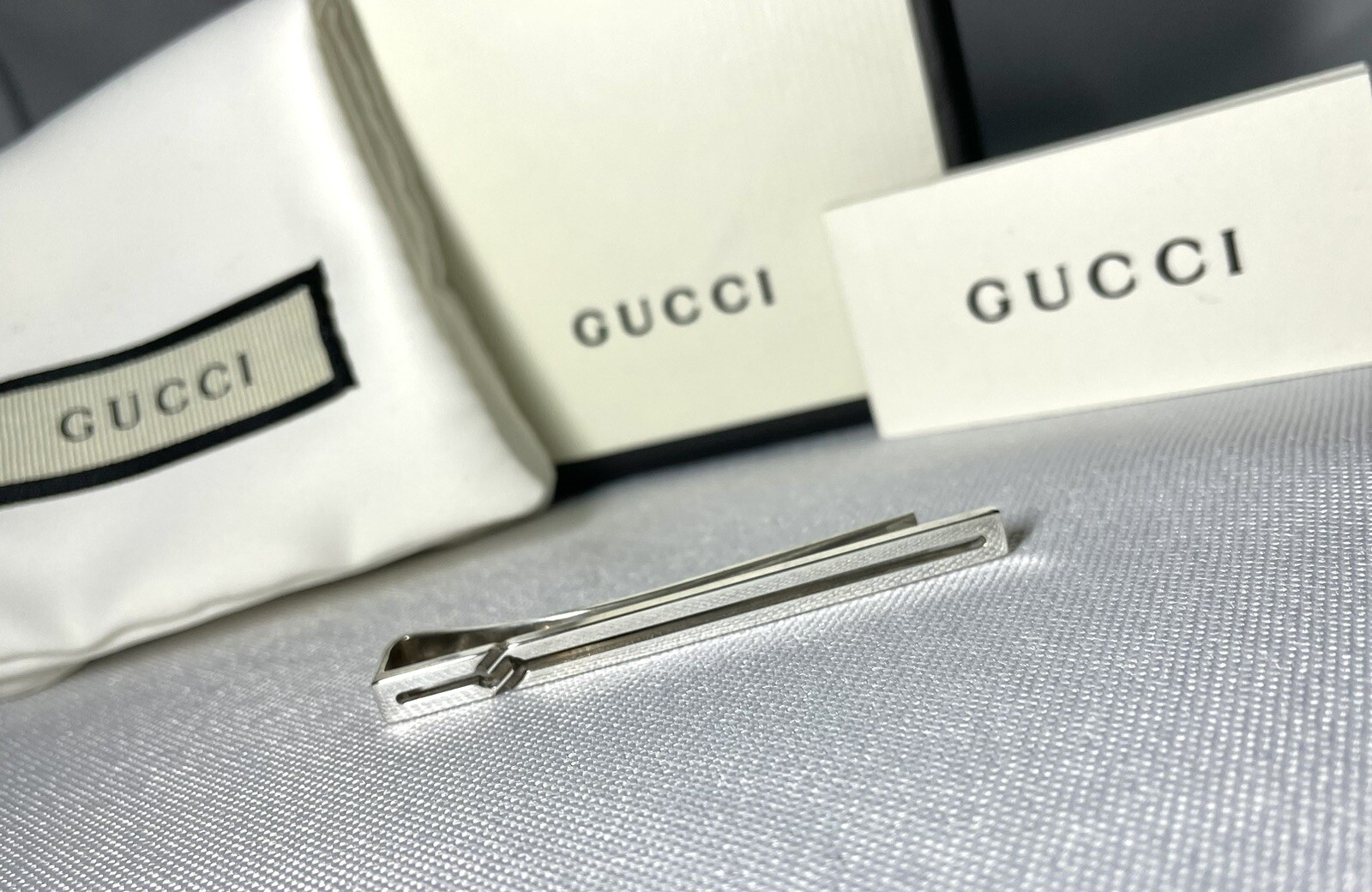 We cannot offer a substantial discount like half price, but please feel free to send us your best offer. Please feel free to send us your best offer, as we will consider it whenever possible. It depends on the payment period, We usually ship the same day or the next day. (Shipping may be delayed due to business trips, etc. In such cases, we will contact you by message. In that case, we will contact you via message.) I bought this item last year at a store in Japan. Gucci Interlocking Knot GG x Center Open Tie Pin Tie Clip Sterling Silver The latest model of Gucci! The sense of superiority that only the latest model can offer is exceptional. The casual accessory style instantly captivates the viewer! This item only From casual to dressy occasions It is useful in a wide range of fields, and can be used to upgrade the ranks of your coordination. Suitable for everything from suits to private use. Magical one-point item You can also use it as a money clip by inserting a bill. Please take advantage of this opportunity! Color silver Material SV925 sterling silver Size Approximately 6 x 0.5 cm (2.362 x 0.196 inches) Weight 8g Condition There are tarnish peculiar to silver material and minor scratches on the back part due to wear, but there is no noticeable damage or clip opening. The surface when worn is clean and in good condition and shine! Accessories: genuine box, genuine storage bag, genuine instruction manual Please take a look at our other Gucci accessories, Tiffany, Burberry, Dior, Dunhill, Versace, Saint Laurent, Bvlgari, Cartier, Montblanc, and many other luxury brands. "To ensure that our buyers can do business with us with peace of mind." We take responsibility for every item we sell. We are very proud of our buyers who have done business with us. We have received such great positive feedback. Excellent seller. Communication went well. Even though I came to the US from Japan, I was told the items arrived quickly and in time for my particular birthday. Some high quality products! Highly recommended! ++++++ Great seller! Very responsive and accurate product descriptions. Highly recommend! The seller is very responsive and reliable. The cufflinks were mint quality. I would be happy to accommodate. Oh, and her TKU to the A+++ seller who provided a beautiful PC with careful packaging and safe and surprisingly fast delivery. I was thrilled with the rich quality look and feel of the metalwork, it looks and feels like new and is perfect in every way, and the solid and clear communication with the TKU seller from start to finish made the transaction even better. We have received many comments regarding the above statement, and we are confident that you will be happy with your purchase. Of course, please be assured that all the products we sell are genuine. We sincerely look forward to doing business with you again! Translated with DeepL.com (free version)
