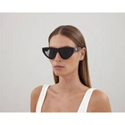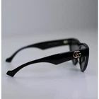 The Gucci GG1333S 001 sunglasses are a bold and stylish accessory designed for women, featuring a distinctive cat-eye shape. Frame Color: Shiny black Lens Color: Grey Frame Material: Acetate Lens Material: Bio nylon Lens Width: 58 mm Bridge Width: 14 mm Temple Length: 145 mm A notable feature of these sunglasses is the Gucci running logo on the temples, adding a touch of brand recognition to the design. The combination of the black frame and grey lenses creates a striking and fashionable look suitable for various occasions.