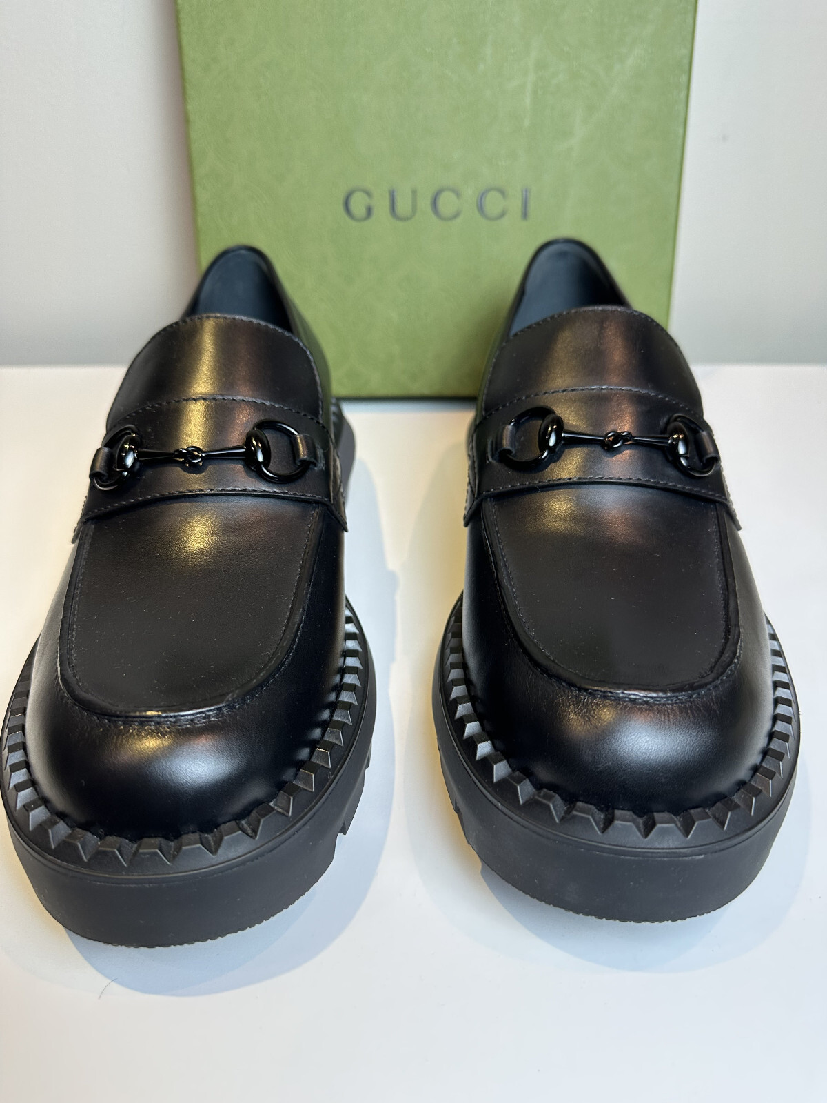 Gucci Horsebit Chunky Loafer in black leather. Product Details: Brand: Gucci Size: UK11.5/US12 Model: 758593 AAAZG Color: Black Material: Genuine leather upper and sole Gender: Men Condition: Brand new in box with original dust bags Made in: Italy