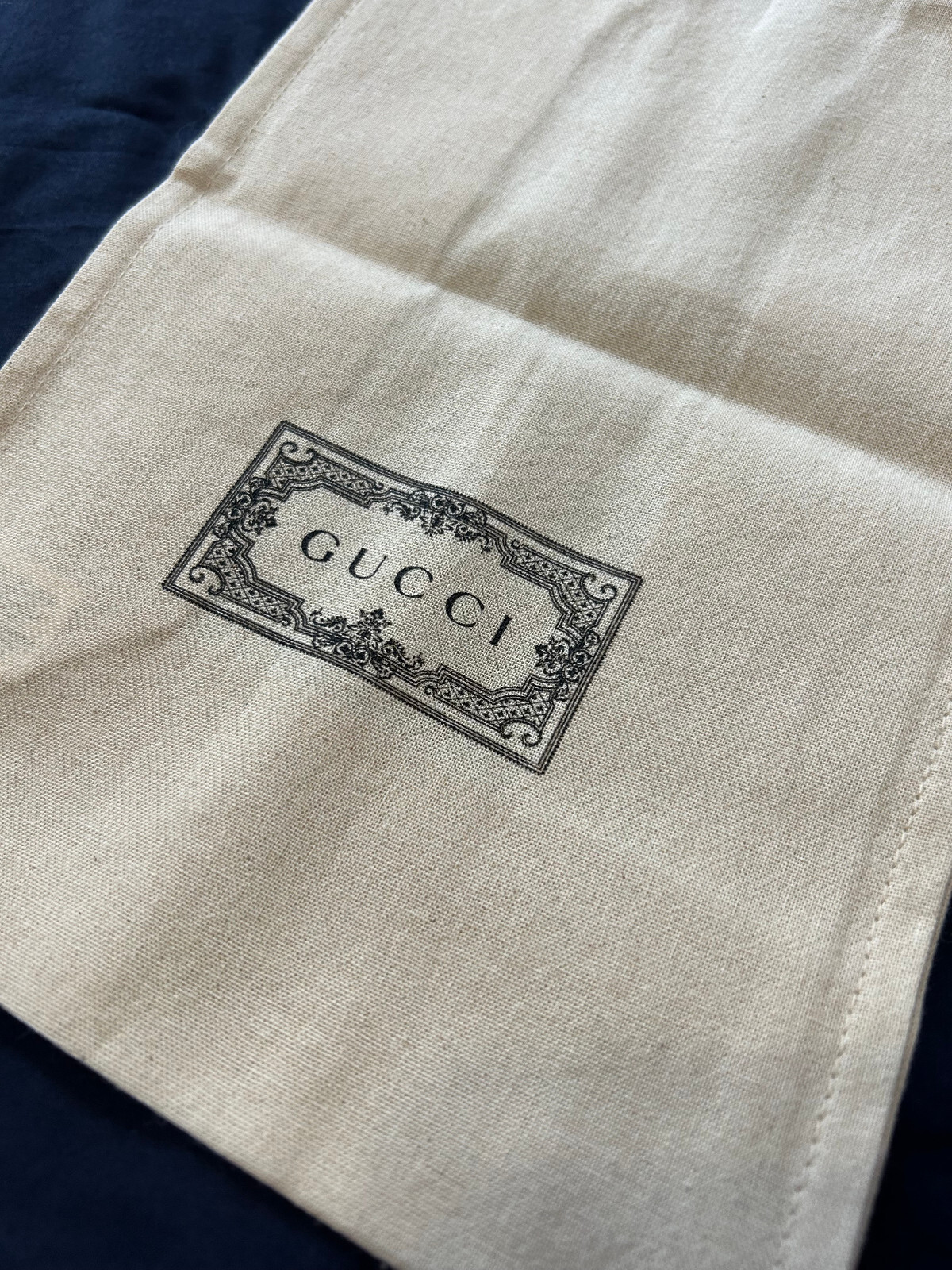 Gucci Cotton Canvas Reusable Tote Bag. Excellent Used Condition. Measures 11" tall by 7" wide and 4.5" deep. Handle drop 4". Great for travel, beach, or gift giving.