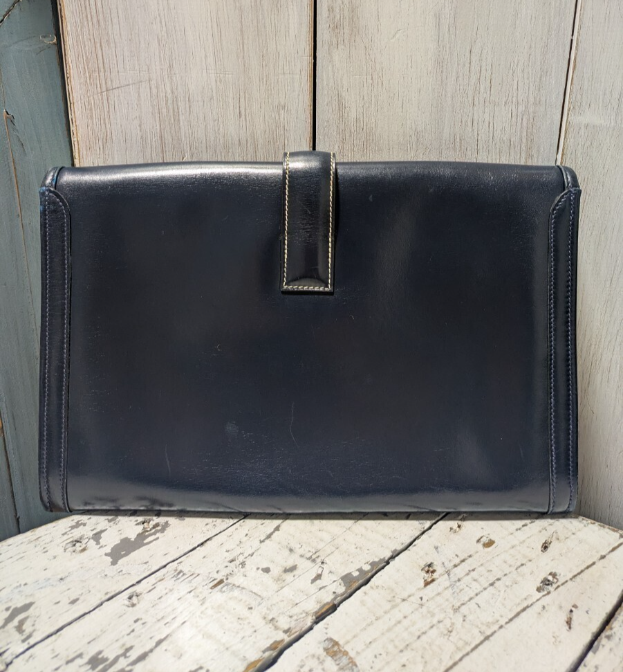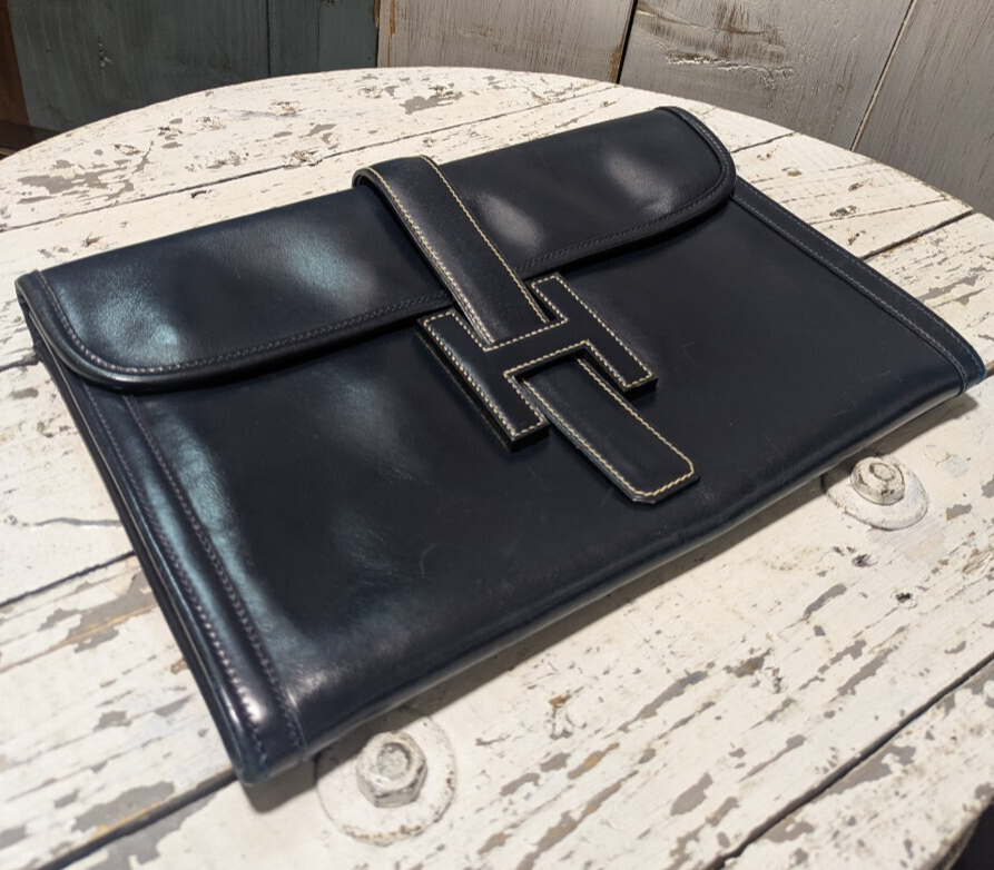 AUTHENTIC HERMES Jige PM White StitchClutch bag Black Box calf Description Item Condition : Used Very Good! There are scuffs and scratches on the corners and edges. There is peeling adhesive on the interior. 【Size】W29cm × H19.5cm × D2cm Shipping Handling Time: 5 business days We will ship your item on week day from Japan. Standard Shipping with tracking number by FedEX or DHL or Japan post or UPS.. We will ships within 5 business days after receiving cleared payment. ※Business days are not include Saturday, Sunday and National holidays. Package We pack items carefully and send them from Japan prompthy. You should have no concern about shipment. International Buyers - Please Note: Import duties, taxes, and charges are not included in the item price or shipping cost. These charges are the buyer's responsibility. Please check with your country's customs office to determine what these additional costs will be prior to bidding or buying. Thank you for your understanding.