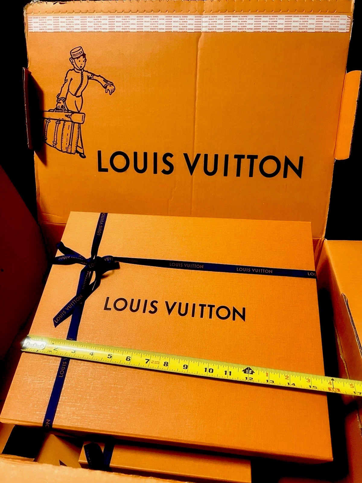 This authentic Louis Vuitton gift box is a must for any fashion lover. Its stylish design and magnetic enclosure. The gift box is 1.5-14-7.5 insize, made of high-quality paper and printed with the iconic Louis Vuitton monogram, perfect for any special occasion and suitable for all kinds of items. Whether you want to pack a designer purse, small or large silk scarves, gloves or other luxury items, this box is sure to impress you, it comes with a shopping tote and ribbon, adding to the high-class decorative effect of the gift. There are also several sizes of boxes 🎁, tell me the size you need, I will help find the perfect size of the gift box, thank you Gift a Chanel shoe box.
