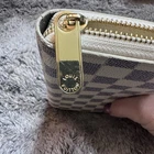 The Authentic Louis Vuitton Damier Azur Zippy Zip Around Long Wallet Purse is a luxurious and stylish accessory for women. Made from leather with a check pattern in white canvas, this wallet features the iconic Louis Vuitton logo and a zip-around design for convenience. With multiple credit card slots, this purse from France is a perfect blend of elegance and functionality for any fashion-forward individual looking to add a touch of luxury to their everyday routine.