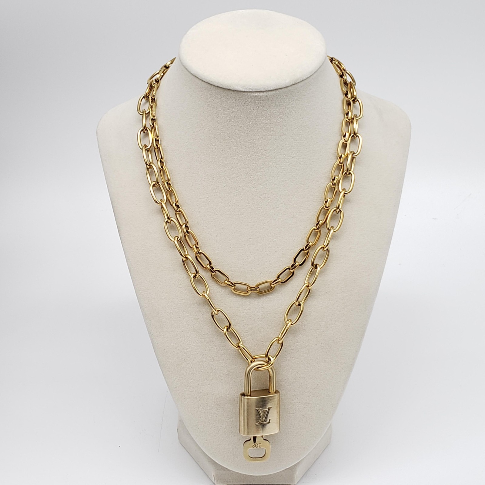 Perfect for this holiday gift to your loved ones! Lock & Key: Louis Vuitton Excellent Preowned Shiny Gold Chain: Not from Louis Vuitton Unbranded Brandnew Stainless Chain Style: Keycharm / locks /Bagcharm/ Necklaces/Keychain Country Manufactured: France SKU: 20-12092025 IMPORTANT NOTE: The Louis Vuitton lock and key is 100% authentic Louis Vuitton, but the CHAIN is NOT from Louis Vuitton. The CHAIN is unbranded new. You can use the lock and key for locking, pendant, or any decoration. FEEDBACK: Your satisfaction is our top priority. We strive for complete accuracy in describing each item?s condition. Please note that colors may vary slightly due to photo enlargement or monitor settings. Occasionally, items may be found damaged and cannot be shipped. Kindly review all photos and descriptions carefully before purchasing. ABOUT US: We are Elisha Luxe Fashion LLC, a licensed and registered company in Tampa, Florida. We specialize in selling pre-owned authentic designer brands such as bags, wallets, accessorries and korean skincare products.