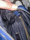 Condition: Great. Some Creasing due to storing. Straps restored by cobblers - seen on last 2 photos! Minor scratches & tarnishing on hardwares. Strap in great condition. No peeling, stains or smell! Absolutely gorgeous bag. Worn many times but I need to downsize. Accessories: With Strap Measurements: Height 5" ", Width 8.5", Depth 1.5" ", Strap Drop 14-18" Designer: Prada Model: Front Pocket Camera Bag Tessuto Small Exterior Material: Nylon Exterior Color: Blue Interior Material: Fabric Interior Color: Blue Hardware Color: Gold