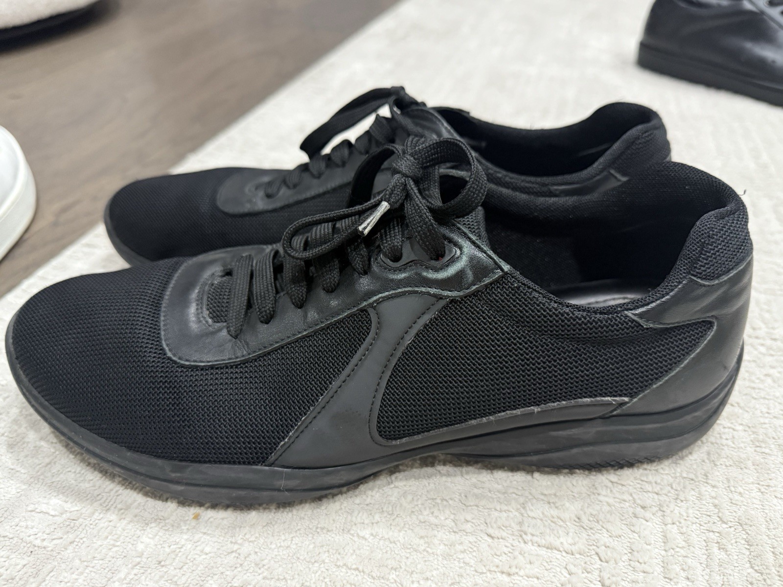 Authentic PRADA Men's Americas Cup Sneakers Black Size US 10.5. Condition is Pre-owned - Good. Shipped with USPS Ground Advantage.