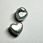 Add a touch of love to your bracelet with this authentic Pandora Heart Charm. The silver charm features two beautiful Agate stones, each with a width and length of 0.5 mm, cut in an Asscher shape. The charm is engraved with intricate designs and is perfect for those who appreciate the finer things in life. Crafted with 900 silver, the charm is durable and of high quality. Its bead design and bar setting style make it easy to add to your bracelet. This is a great addition to your charm collection, especially if you love themes of love. Get yours today!