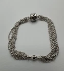 This Authentic Pandora Multi Strand Sterling Silver One Clip Station Bracelet is a charming piece perfect for various occasions such as Mother's Day, engagement, weddings, birthdays, and anniversaries. Made of high-quality sterling silver with a barrel closure, this bracelet features a stackable design and a clip charm, adding a touch of beauty and love to any outfit. The bracelet is signed by Pandora and has a length of 8.5 inches, making it a versatile and elegant accessory for any jewelry lover. “No Original Box or Pouch”