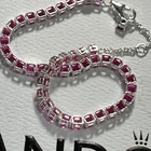 Uncork a little luxury with this gorgeous ruby tennis bracelet! A continuous line of sparkling, round rubies, each securely set in a sterling silver mounting, radiates a rich, vibrant hue. The delicate chain adds an element of refined elegance, while the sturdy lobster clasp ensures a secure and comfortable fit, further enhanced by an adjustable length, finished with a matching dangle. T Main Stone: pink crystal cz Metal: Sterling Silver Metal Purity: 925 Style: Tennis Type: Bracelet Main Stone Color: pink Keywords: Ruby bracelet, Tennis bracelet, Sterling silver bracelet, 925 silver, Gemstone bracelet, Women's bracelet, Red bracelet, Adjustable bracelet, Statement bracelet, Gift for her, Ruby jewelry, Fine jewelry, Elegant bracelet Authentic Pandora Bracelets, Charms, Earrings, Necklaces, Gift Sets Listing and template services provided by inkFrog