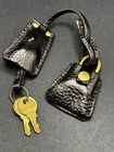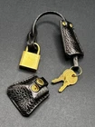 Authentic Prada Clochette Gold Key Fob And Lock Black Leather One spot of wear on leather on one side of the of key holder Otherwise good condition Has certificate of authenticity