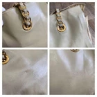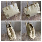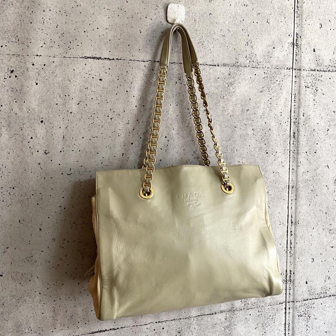 This is a PRADA leather chain tote bag in khaki beige. It is made in Italy from genuine leather and nylon. The bag features a front logo and leather chain accent. The interior has a wide-opening design with ample storage space and a gusset, making it suitable for A4 size items. The body has some signs of use such as scuffs, deformation, and stains, but is in relatively good condition. There are scuffs and scratches on the edges and corners, and scuffs, wrinkles, and creases on the handles. The interior has some stains but is in relatively good condition. No accessories are included, only the main unit. The size is approximately 11.81 inches in height, 14.57 inches in width, 5.12 inches in depth, and the shoulder strap length is approximately 29.53 inches. The interior has 3 storage spaces and 1 zip pocket. I promise fast shipping via FedEx or DHL as soon as possible! Import duties, taxes and charges are not included in the item price or shipping charges. These charges are the buyer’s responsibility. These charges are normally collected by the delivering freight (shipping) company or when you pick the item up - do not confuse them for additional shipping charges.