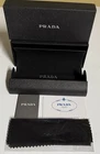 This product is an authentic Prada sunglasses eyeglasses magnetic case in black medium size. Made of faux leather, this hard case features a vintage theme and a convenient magnetic closure. Measuring 6 inches in length, 2 inches in width, and 1.5 inches in height, this unisex case is designed to fit sunglasses securely and protect them from scratches and damage. Crafted in China, this stylish and practical accessory is perfect for storing and transporting your eyewear.
