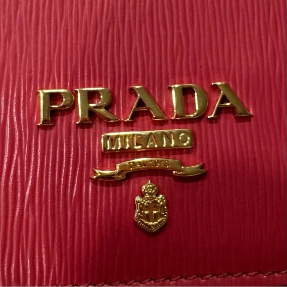 This Prada card holder is absolutely stunning—the hot pink leather is vibrant and luxurious. It’s in flawless condition, no bends or corner wear, and fits multiple cards neatly. The serial number confirms authenticity, and the compact size is perfect for any bag. Love it!