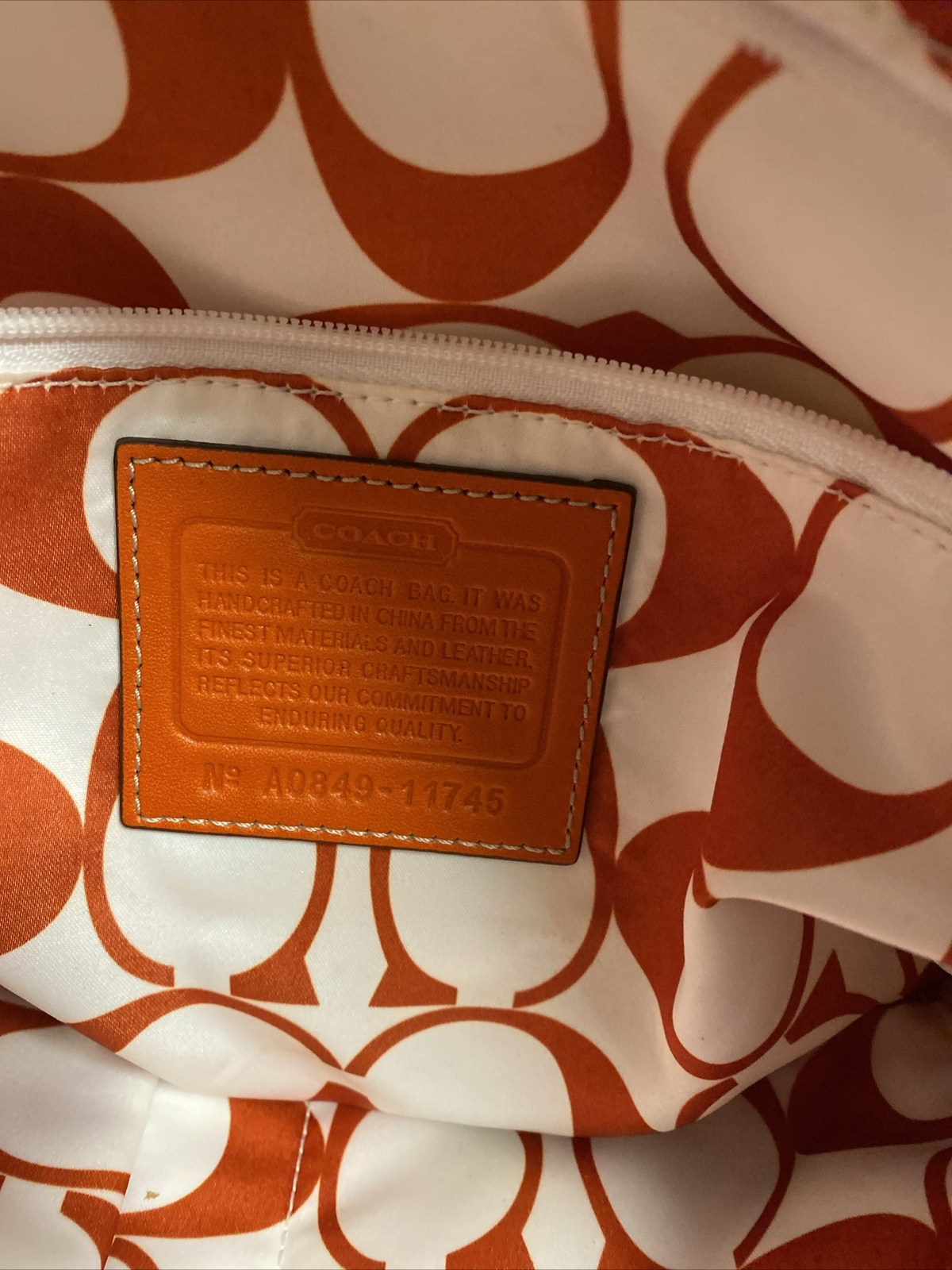 Some typical signs of use. Lots of life and beauty left. Purchased from a genuine Coach Store and stored in my closet. This listing is for two authentic Coach handbags that are preowned. The first handbag is a tote style bag made of canvas material, and the exterior color can be seen in the photos. The second handbag is also a tote style bag and is made of the same canvas material. Both bags are perfect for any woman looking for a stylish and functional accessory.