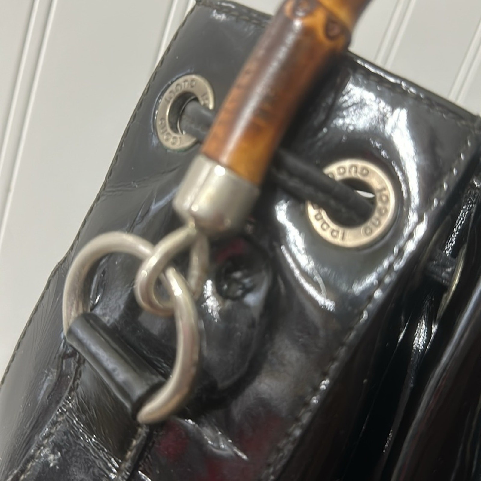 Authentic and beautiful Gucci patent leather tote. This bag with the iconic bamboo handle, exudes, elegance, and Class. This bag is in excellent condition with no damage to the interior or edges of the bag. Looking for something that no one else has? This is the one!