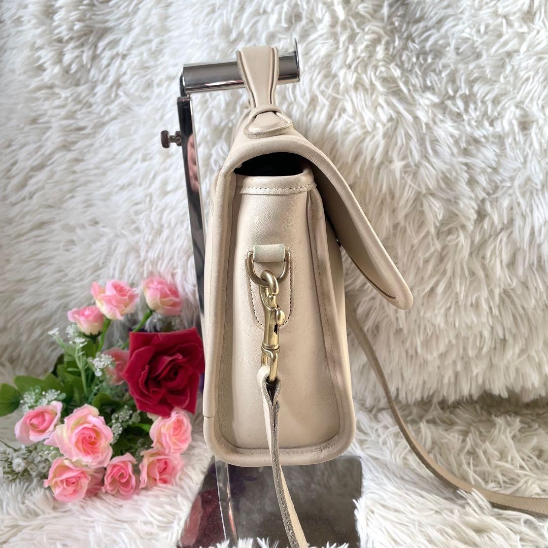 Description ◾️ Brand COACH ◾️Item: 2way Shoulder bag H andbag ◾️ Design OLD COACH VINTAGE COACH Turn Lock Gold hardware Can be worn over the shoulder Can be worn crossbody Detachable shoulder strap Made in USA Model number: 9870 ◾️ Color: Ivory white ◾️ Specifications: Turnlock flap closure Inner pocket zipper type x 1 open x 1 1 open outer pocket ◾️ Material: Genuine leather ◾️ Size (cm) -Vertical = 18 -Width=24 -Gusset width = 7 -Handle length = 13 -Handle height = 3 -Shoulder strap length = 101 ◾️Condition: USED — There are no noticeable tears, but as this is a vintage item, there are some scratches, dirt, and peeling metal fittings. As this is an older item, some age-related wear may also be present. Please refer to the photos for details, and feel free to contact me if you have any questions. Shipping We will ship by DHL , FedEx , or Japan Post . Please note that business days do not include Saturdays , Sundays , or Japanese national holidays . Notice to International Buyers Please read the following information before purchasing. For U.S. Buyers Import duties are already included in the item price and shipping cost. You will not need to pay any additional customs duties. Please purchase with confidence. For Buyers Outside the U.S. Import duties and taxes are not included in the item price or shipping cost. However, please note that the item price already reflects the U.S. import duties. If you would like to discuss the price, feel free to send us an Offer or Message . Remote Area Delivery If the delivery address is located in a remote area, FedEx or DHL may charge an additional fee. In such cases, you may be asked to pay an extra USD $15-$20 . Thank you for your understanding. Have any questions? Please contact us before purchase. we're happy to help.