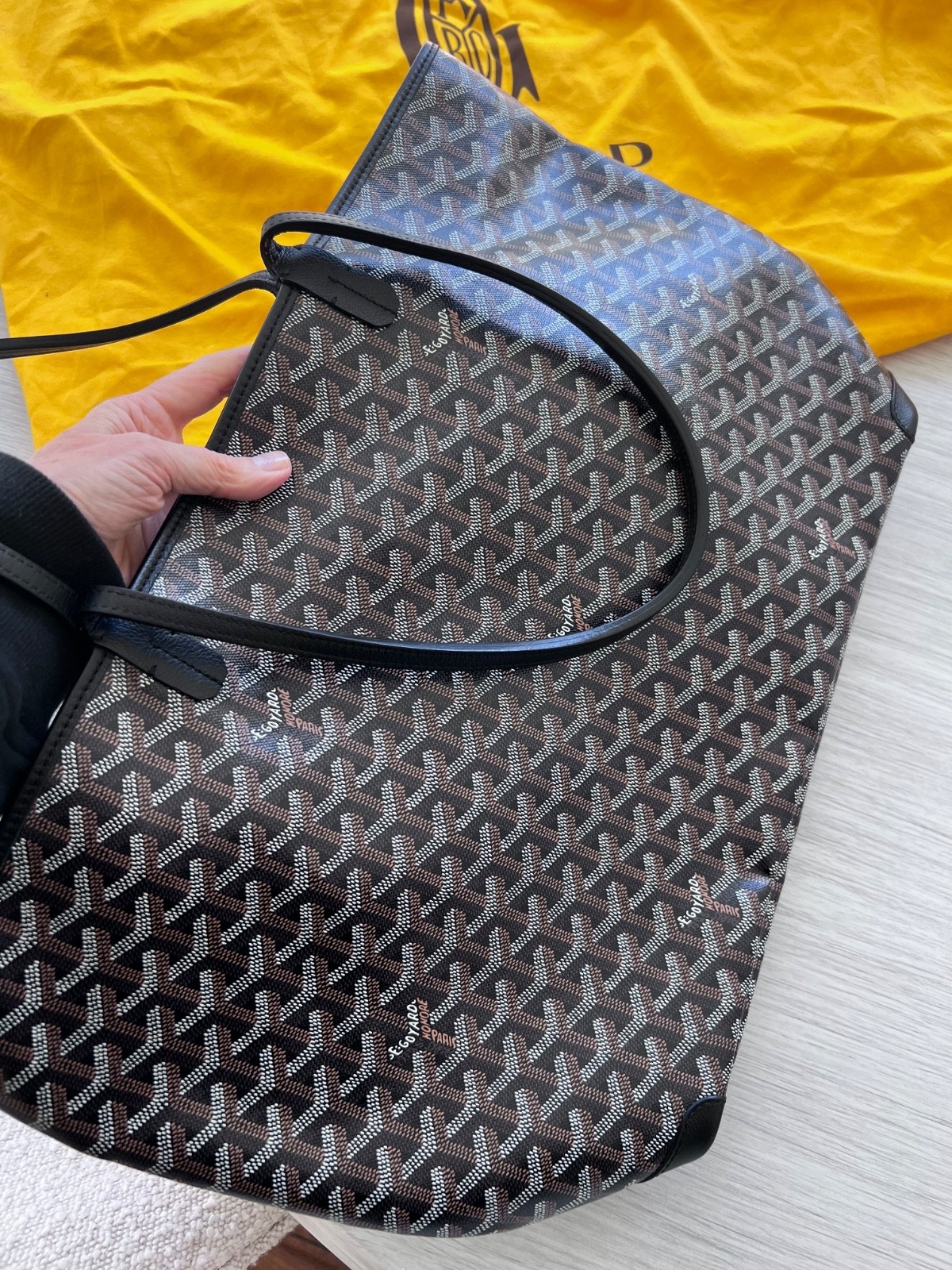 This bag was bought at the Goyard store in Beverly hills. I bought it. I am the only owner of it. I have reciepts and the dust bag. I do not smoke or vape and the bag is stored in a cabinet in its dust bag. the measurements are Length: 50 cm Width: 17 cm Height: 30 cm Weight: 600 g