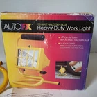 Auto FX 55 Watt Halogen Heavy-Duty Work light. Ideal for auto repair. Has a 12 Volt Cigarette lighter adapter plug on a 15 feet long cord. This work light is medium sized low profile. New old stock (1996) in Open Package. See pictures for a detailed look at this item. Will ship well protected. Thanks.