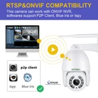 【Dual Band and ONVIF Protocol】: PTZ WIFI outdoor camera offers options with both 2.4GHz or 5GHz Wi-Fi bands, or via a standard Ethernet cable. Additionally, ptz camera adheres to the ONVIF protocol, enabling easy configuration within various security systems without any additional charges. such as browsers, NVR systems, Blueiris, iSpy, VLC, HIP2P Client, and the Camhipro or Camhi mobile apps, Please note that the ptz wifi camera does not support Smart streaming boxes. 【Auto Tracking and PTZ 】With Auto Tracking, the PTZ security camera autonomously follows individuals within its field of view until they exit its range. Its Pan Tilt Zoom capabilities 360 pan and 120 tilt, coupled with a true 5X optical zoom, ensuring comprehensive coverage without any blind spots. Eliminating the need for expensive monthly subscriptions to security companies. This PTZ WiFi camera offers peace of mind and reliable protection, highly recommended it for home business security. 【HD 5MP with Clear Night Vision】: Featuring a high-resolution 5MP sensor, the PTZ security camera delivers crystal-clear imagery for detailed surveillance. Its Night Vision capabilities are enhanced with 3 distinct modes. standard IR mode, intelligent night mode and color night vision mode. Additionally, users have the flexibility to manually set the night vision modes via the app Camhipro, ptz ip camera providing a real HD night view for enhanced visibility and security. 【Two Way Audio and IP66 Waterproof】: The outdoor WiFi wireless security camera boasts a built-in microphone and speaker, enabling not only the monitoring of surroundings but also two-way communication with visitors or potential intruders. Outdoor PTZ WiFi camera features a sturdy, solid build (not plastic housing) and carries an IP66 waterproof rating. This ensures its resilience against harsh weather conditions, allowing for long-term outdoor use even in the midst of severe storms. 【Remote Access and Motion Alerts】: Experience seamless remote access, enabling you to stay connected to security camera feeds from any corner of the globe. With the Camhipro app, receive immediate motion alerts on a phone, ensuring you're promptly notified of any detected activity. For added convenience and accessibility, opt to receive these motion alerts directly to your email inbox. With security camera, you can maintain a vigilant watch over your premises, regardless of your location. 【Enjoy Plus Features】: Access the camera via the LAN network by simply typing its IP address into your browser. Receive snapshots via email or save videos to an FTP server for convenient storage. Customize motion detection areas and sensitivity levels to suit your preferences. Utilize local video playback and storage. Set human motion detection alerts exclusively for enhanced accuracy. Set preset positions for swift pan-tilt movements to desired locations.