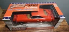 1:18 scale diecast model of the General Lee, 1969 Dodge Charger R/T. Cooter's Garage series by Auto World. Car was purchased before Hazzard fest in Lurray Va at Cooters garage. Car was autographed by Ben Jones and Tom Wopat. The box has minor damage as seen in the 13-16th pictures. Car comes with sticker kit and has the antenna taped under the plastic packaging.