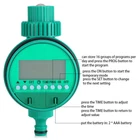 Description: Watering a large area of plant everyday is really tiring. This automatic electronic irrigation timer is of great use for watering home garden planting especially suitable for the people are not at home or too busy to take care of their family garden. Mainly adopts quality plastic, high quality and durable. Intelligent flowers watering timer, the standard clock, you can set the watering for your garden when you are not at home. Very practical and can be applied in your home garden, roof garden, lawn, balcony, courtyard etc. With this irrigation, you can now maximize the efficiency of your irrigation system. Practical product at good price, worth buying. Features: Automatic & intelligent: with a timer, you only need to press the buttons to set the irrigation and it will water the plants on. Multi-functional LCD screen: displays day of the week, hour, minute and programming for easy reference; buttons for easy setting and re-setting. User-friendly: 16 groups of watering can be set per day at most; different programs for your special demands: single and multi program, regular and cycle, program of one day or several days. Versatile use: suitable for the control of irrigation systems in the domestic sector, such as lawn sprinkler, sprinklers, greenhouse and more. Battery powered: only 2 AAA batteries required; not tethered to socket, you can use it any corner in your garden. Specification: Condition: Brand New Material: ABS Color: Green as Picture Batteries: 2 x AAA batteries ( Not included ) Suitable Water Pressure: 0-400KPA Irrigation: shortest 1 min, longest 9 hours 59 min Irrigation Frequency: at least once a day, up to 16 times, and the longest for two days Product Size: Approx. 162 x 86mm / 6.38 x 3.39inch Package Weight: Approx. 280g Package Included: 1 x Irrigation Timer 1 x User Manual Note: 1. Please allow 0-1inch error due to manual measurement. Thanks for your understanding. 2. Monitors are not calibrated same, item color displayed in photos may be showing slightly different from the real object. Please take the real one as standard.