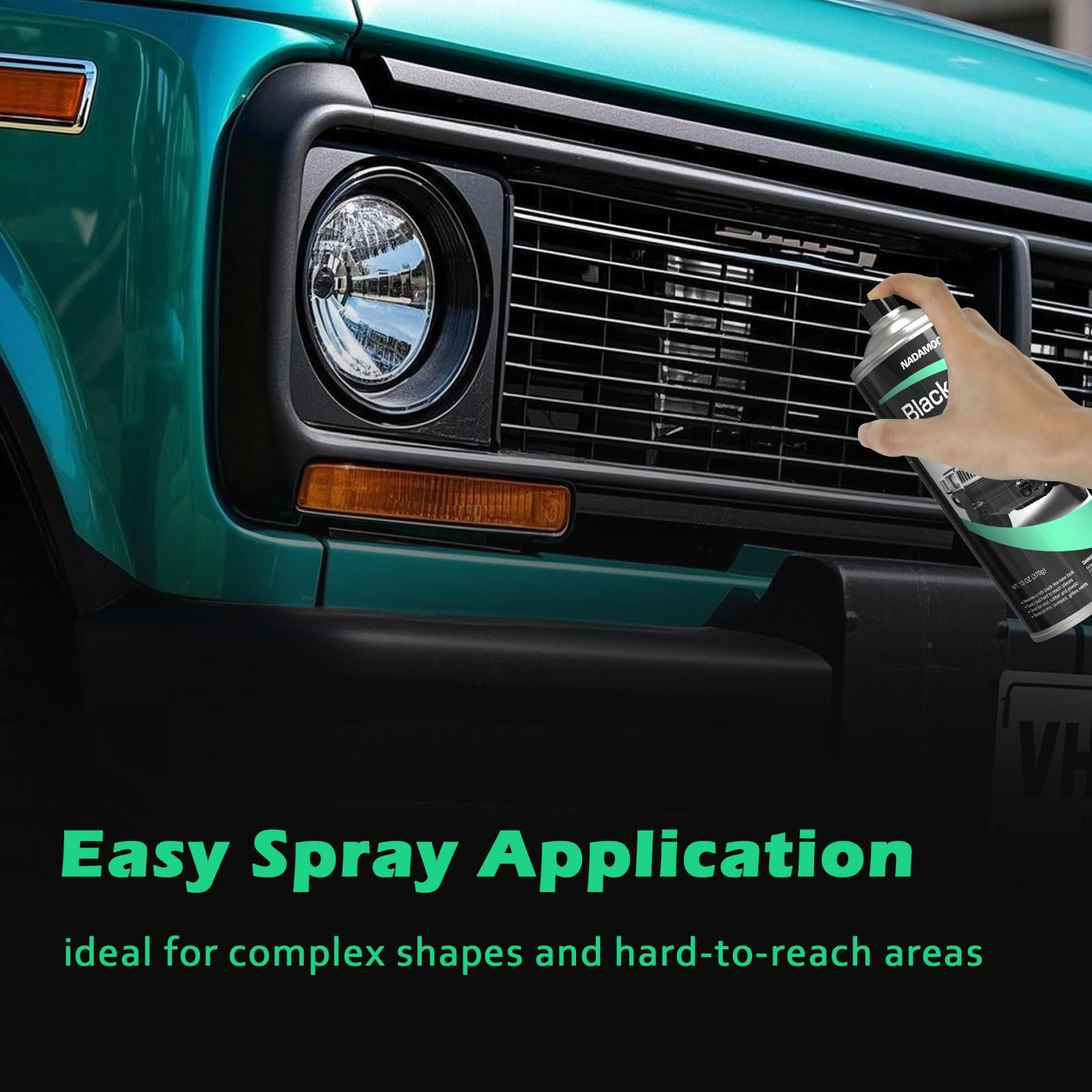 Automotive Black Trim Spray Paint Black, 2 Cans,370g / 450ml per can Multi-Surface Adhesion: Engineered to adhere flawlessly to rubber/ vinyl/ plastic surfaces. Whether you’r restoring a scratched car bumper, reviving faded patio furniture, or upgrading faded plastic appliances, this spray paint ensure the need for resilience finish. Professional-Grade Black Trim Spray Paint also bonds to metal, wood, ceramic, creating a seamless finish. Good Weather Resistance : Engineered for relentless outdoor durability.The UV-Resistant Black Paint survives -40°F to 150°F, prevents fading better than any normal black spray paint—crucial for car trims and outdoor furniture in sunbelt states. Good Chemical Resistance: The black coating forms a barrier that resists the detrimental effects of harsh chemicals, such as cleaners, oils, salt, and acidic contaminants. This ensures that the car bumper and outdoor patio furniture remain unscathed and retain their pristine condition even in challenging environments. Effortless Application: Spray application is perfect for Beginner DIYers—no tools needed! It not only eliminates drips and streaks, but also has the ability to cover hard to reach areas. Ideal to coat tight spaces like bike frames and car radiator grilles without awkward hand angles. 2 Cans;Color:Satin Finish Black;13 oz/ 450ml per can;1 can of paint covers about 10-12 sq.ft area for 2 light coat;