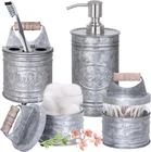 Autumn Alley Rustic Bathroom Accessories Set 4 - Galvanized Soap Product Details Number of Pieces: 4 Finish Type: Glass,Metal,Wood Manufacturer: One World decor UPC06 Package Dimensions: 13.07 x 9.8 x 5.2 inches Item Weight: 2.73 pounds Item model number: BRS001 Finish types: Glass,Metal,Wood Batteries required: No Material: Wood, Glass, Metal Color: Galvanized Brand: Autumn Alley Style: Galvanized Included Components: Farmhouse Soap Dspenser, Farmhouse Bathroom Jars X 2, Farmhouse Toothbrush Holder 【4-Piece Deluxe Rustic Bathroom Accessories Set】Elevate your farmhouse bathroom decor with 4 UNIQUE, galvanized beauties: 1x Liquid Rustic Soap Dispenser, 1x Toothbrush/Make-Up Brush Holder, 2x Cutely Topped Canister Jars for q-tip swabs, buds, cotton balls, cosmetic pads. 【Delightful Rustic Farmhouse Decor】Our bathroom themed decor sets boast beautifully metallic finishes, pretty lids with cute ball handles, eye-catching “Brush”/“Wash” labels and little ball feet (on 2 containers) in a fun bathroom countertop set, adding tons of vintage charm to any vanity shelf/sink. 【Handy & Easy-To-Use Around The House】Don’t let the restroom door stop you! Infuse sweetheart farmhouse touches everywhere: worktops, tabletops, counters, shelves. Our vintage farmhouse decor set's chic, durable versatility fits household kitchens, bedrooms, or home offices. The perfect Rustic house decor! 【Excellent Bathroom Accessories Farmhouse Style】Impeccably coated against corrosion or humidity damage, this set for bathroom accessories helps to keep small toiletry/ items, brushes, and lotions, organized, clean, and in tip-top shape.