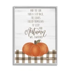 Framed Giclee Sizes Include Standard: 11 x 1.5 x 14 Large: 16 x 1.5 x 20 Oversized: 24 x 1.5 x 30 Wall Art is Ready to Hang with Hardware Free Hanging. No installation required. For Easy Set Up Lean or Layer Artwork on Shelf or Against Wall. Our giclée prints are carefully mounted on a durable MDF backing, and then perfectly finished in a 1.5 inch thick woodgrain frame. Mounted frame colors include black, gray farmhouse and white. Made In USA. Artwork Relates To: Fall, Autumn, Pumpkins, Rustic, Tartan, And the Sun Took a Step Back, the Leaves Lulled Themselves to Sleep and Autumn was Awakened Design by Imperfect Dust