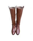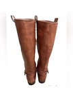 Ava & Aiden All Leather Brown Zippered Knee High Fashion Riding Boots Sz 6 Step out in style with these Ava & Aiden knee-high boots. The classic riding boot design features a rich chestnut brown leather upper with an almond toe shape and flat heel. The side zipper and buckle strap accents add a touch of edginess and make them easy to slip on and off. Perfect for any occasion, whether you're dressing up for a party, staying casual for a day out, or dressing for work, these boots are a versatile addition to any wardrobe. The arch support and ankle strap make them comfortable for all-day wear, while the leather upper provides durability. Available in women's size 6. Note wear on the inner lining. This does not show and does not affect wearability of the boot. See photos.