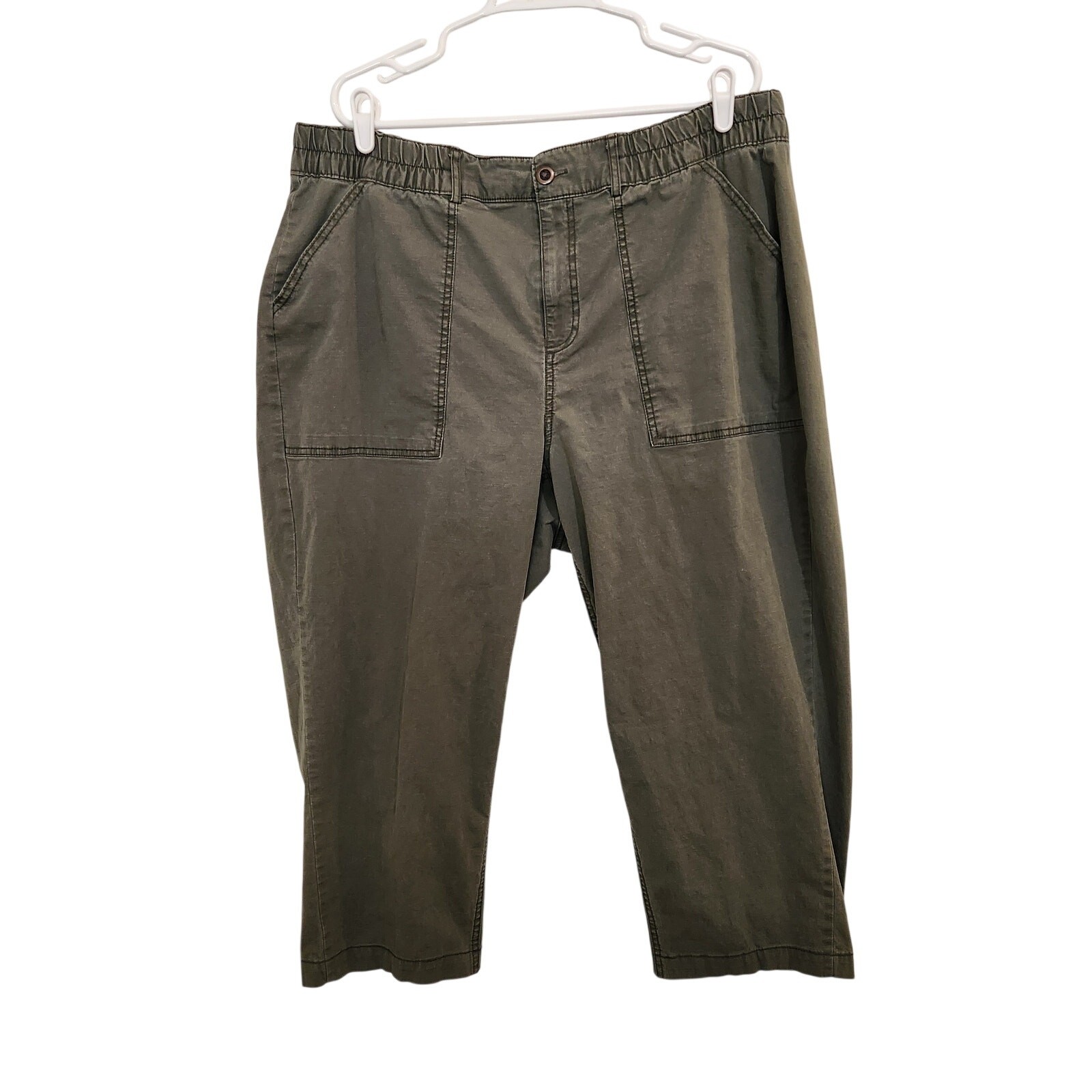 Ava & Viv Olive Green High Rise Casual Elastic Waist Cropped Pants Plus Size 18W Great used condition Measurements: Waist laid flat = 20.5 in Rise = 13 in Inseam = 23 in Comfortable olive green cropped pants designed with a flattering high-rise fit and elastic waistband for easy all-day wear. A versatile casual piece that works well with tees, blouses, or lightweight sweaters. casual plussize womenswear classic modern minimalist lounge summer laidback weekend basic trendy curvy versatile easywear loungewear spring