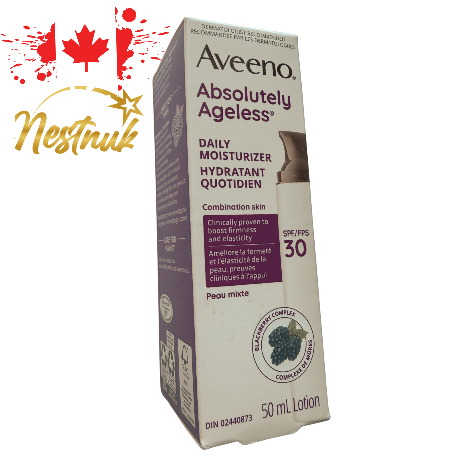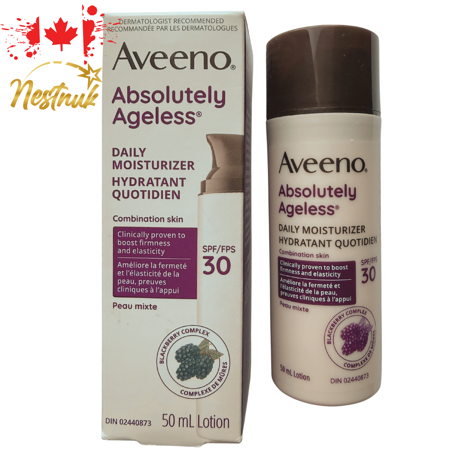 "We prioritize freshness by sourcing products only after receiving orders. With 1–3-day processing, every item is handled with care and quality. Shop confidently, knowing you’re always getting fresh, hand-selected goods!" Shop confidently knowing your order is tariff-free — no extra duties or delivery charges upon arrival. *** Note: The appearance may vary slightly depending on the manufacturer. *** 🌸 Aveeno Absolutely Ageless Daily Moisturizer SPF 30 – Anti-Wrinkle Face Cream | 50 mL ✅ Product Overview Reveal smoother, more youthful-looking skin with Aveeno Absolutely Ageless Daily Moisturizer SPF 30 . This lightweight daily face cream is formulated with Antioxidant Blackberry Complex , Vitamin C , and Vitamin E to help visibly improve the appearance of fine lines, wrinkles, skin texture, and uneven tone over time. Designed for everyday use, this moisturizer also features Broad Spectrum SPF 30 sunscreen to help protect skin from harmful UVA/UVB rays while supporting the skin’s natural moisture barrier for healthier-looking skin. 🔑 Key Features & Benefits Broad Spectrum SPF 30 for daily sun protection Helps visibly reduce fine lines and wrinkles Helps smooth skin texture and even skin tone Formulated with Antioxidant Blackberry Complex , Vitamin C & E Helps maintain skin firmness and hydration Oxybenzone-free sunscreen formula Dermatologist-tested , hypoallergenic & non-greasy Non-comedogenic (won’t clog pores) Suitable for daily facial use 📦 What You’ll Receive 1 × Aveeno Absolutely Ageless Daily Face Moisturizer 50 mL (1.7 fl oz) bottle Factory-sealed and fresh stock 📝 Directions Apply liberally to face and neck once daily Use as part of your morning skincare routine Reapply as needed when exposed to sunlight, especially after swimming or sweating For best results, use regularly ⚠️ Safety Information For external use only Do not use on broken skin Avoid contact with eyes; rinse thoroughly if contact occurs Stop use and consult a doctor if rash or irritation develops Keep out of reach of children If swallowed, contact a Poison Control Centre or seek medical help immediately 🏆 Why Choose Aveeno? Aveeno is a dermatologist-recommended skincare brand known for combining natural ingredients with advanced science. The Absolutely Ageless collection is designed to help keep skin looking youthful, radiant, and well-protected every day. ⚡ Upgrade your daily skincare routine with Aveeno Absolutely Ageless SPF 30 Face Cream – 50 mL , combining moisturization, anti-aging care, and sun protection in one step.