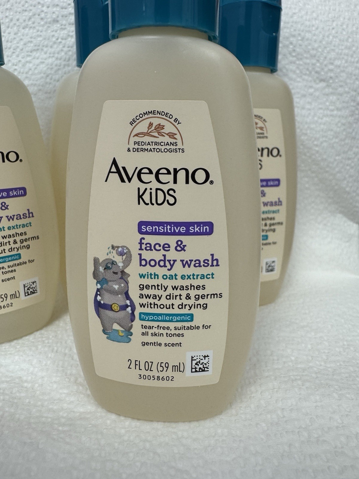 Aveeno Kids Face & Body Wash for Sensitive Skin, Oat Extract, Tear-Free, Non-Dry. 4 bottles 2 fl oz each ! New !