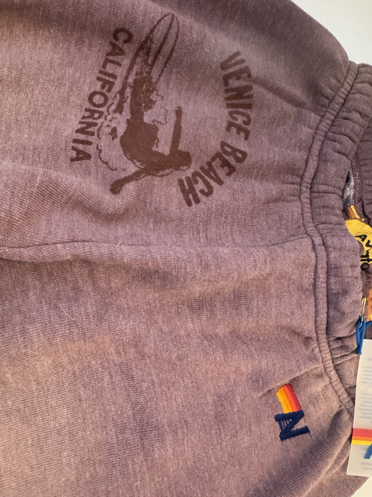 Ride the waves of nostalgia with our Venice Surfer Hoodie from Aviator Nation! This classic design brings back the laid-back vibes of the California coast, featuring our beloved Venice Surfer print that captures the essence of sun, surf, and good times. The most comfortable sweatpants you'll ever own. Our single needle stitch work gives each garment a unique, one of a kind effect. All of our products go through an intense breaking-down process that gives them a vintage feel you'll love because it's broken in from day one of wearing it. You're going to live in these sweats. - Hand sewn in our own factory in the heart of Los Angeles - Tri-Blend Fabric: 50% polyester, 38% cotton, 12% rayon - Machine wash cold with like colors. Hang or tumble dry on low Retails $156