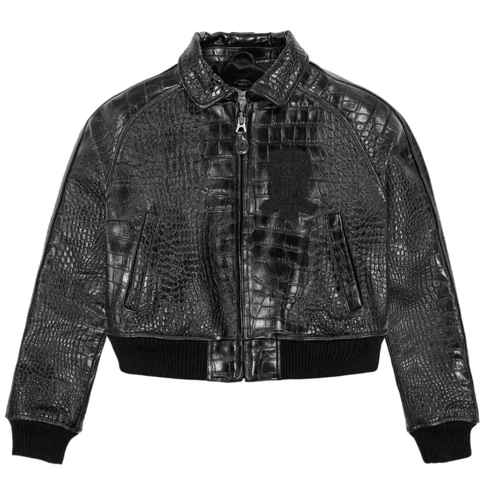 Real Cowhide Leather β Crocodile embossed finish for a luxurious and edgy texture π§₯ Classic Bomber Style β Ribbed cuffs, waistband, and collar for a tailored fit π Heavy-Duty Front Zipper β Smooth and secure fastening π Comfort Lining β Soft interior for all-day wearability π― Minimalist Chest Logo β Understated branding for a clean, premium look π€ Sleek All-Black Design β Versatile and bold, perfect for any outfit Material: 100% Genuine Leather Lining: Soft Inner Fabric Closure: Full Front Zipper Fit: Regular/Bomber Cut Sizes Available: 2XS β XXXXL