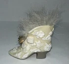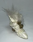 This beautiful Avon Gift Collection Victorian Shoe is a must-have for collectors and enthusiasts of decorative items. It features a stunning design with feathers and flowers, in a cream, white, and gold color scheme that adds a touch of elegance to any room. Made of high-quality resin, this shoe is durable and long-lasting. Its unique style is perfect for those who appreciate Victorian decor. The shoe is in great shape, with no chips or damages that would affect its beauty. Add this lovely piece to your collection today!