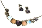 Add a touch of elegance to your outfit with this stunning Avon designed by Nina Ricci earring necklace set. The set includes a beautiful necklace and earrings, both adorned with faux opals and lucite material. The multicolor design adds a pop of color to any outfit, making it perfect for any occasion. This vintage set is a must-have for any fashion jewelry collector. The pieces are in excellent shape and have been well-maintained. The lot includes two pieces, and the brand is Avon Nina Ricci. The jewelry department is fashion, and it is a great addition to any woman's collection. T hank you for looking. This item is from a smoke free home. Please view all the photos. Check out all my other items. We ship in the US only.