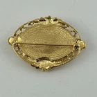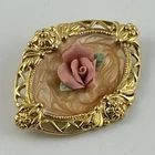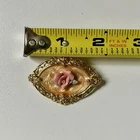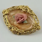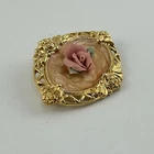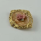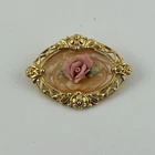 Avon Victorian Rose Brooch Pink Gold Tone Enamel Swirl Oval Vintage NOTE: One of the rose leaves is broken. Please see photos.