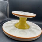 Dual Cake and Egg Pedestal AVON EXCLUSIVE Cake stand on one side, deviled-egg tray on the other. Comes with a deviled-egg recipe and angel-food-cake recipe. Holds up to 16 eggs. 4 1/4" H. Trays, 10 1/4" and 6" diam. Hand-painted ceramic. Hand Wash Very good condition Nonsmoking home