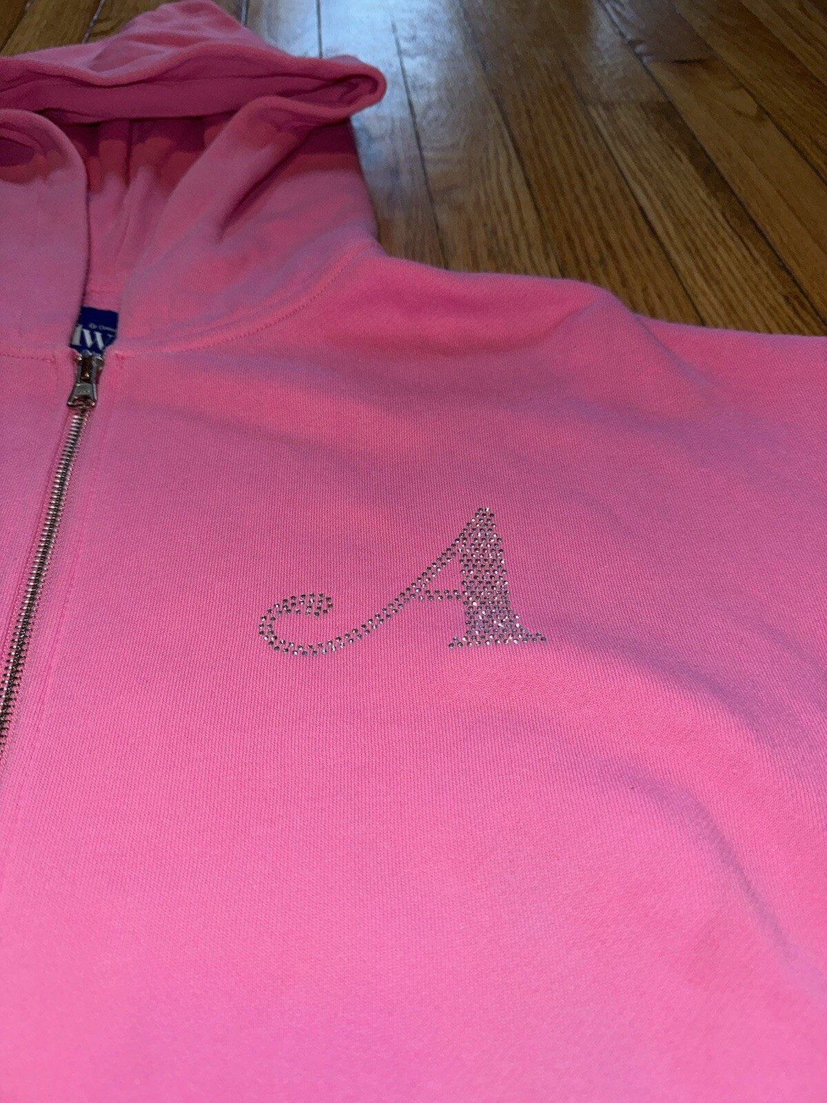 Awake NY Hot Pink Rhinestone Zip Up Hoodie with Sparkle Detail