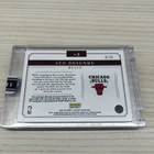 This is an Ayo Dosunmu Rookie Card from the 2021-22 Panini Instant Prime Signatures series. The card features an autograph from Ayo Dosunmu and is numbered 9 out of 10, making it a rare and highly collectible card. It is in near mint or better condition and is a part of the Chicago Bulls player's collection, making it a sought-after item for basketball card collectors. This modern basketball trading card is a valuable addition to any sports memorabilia collection.