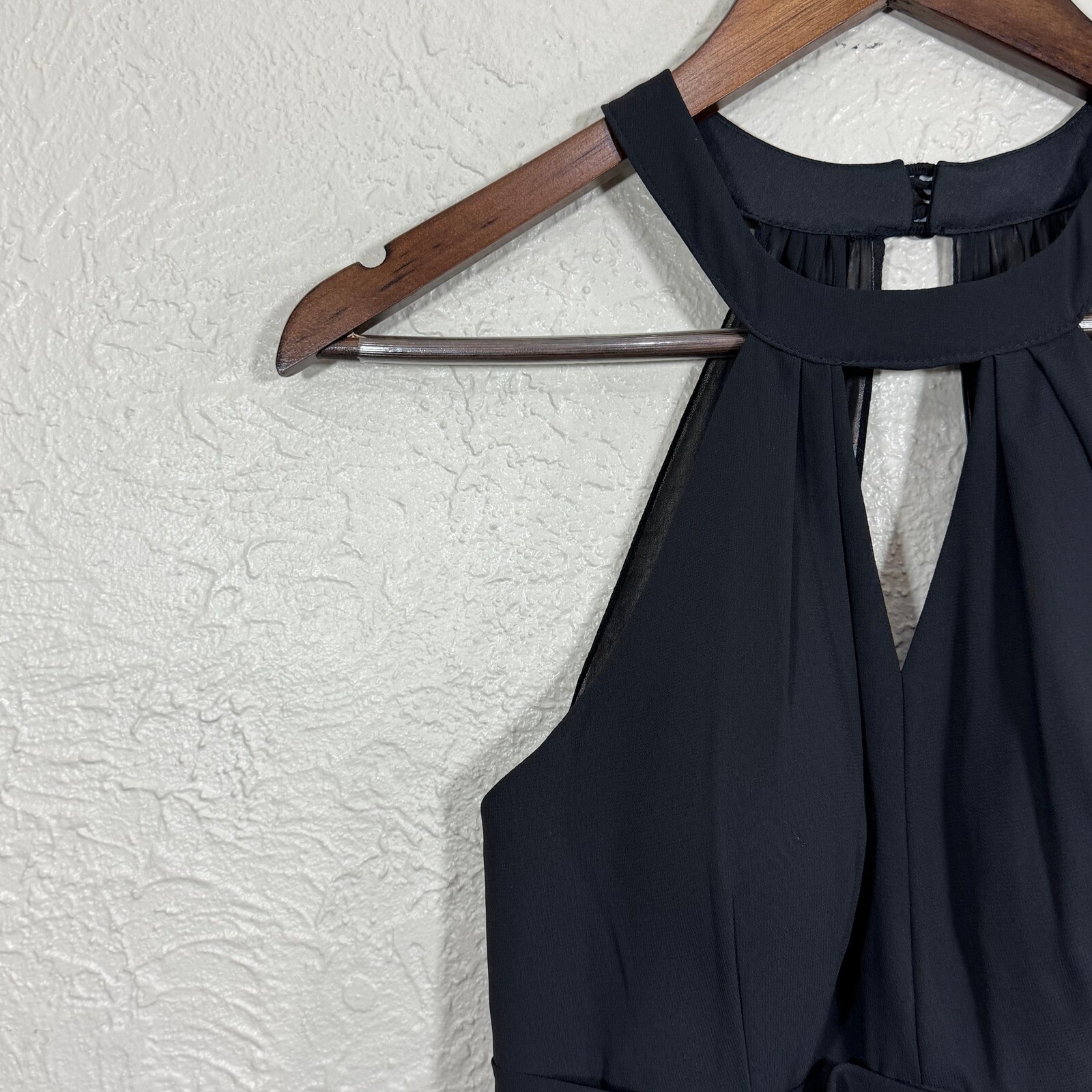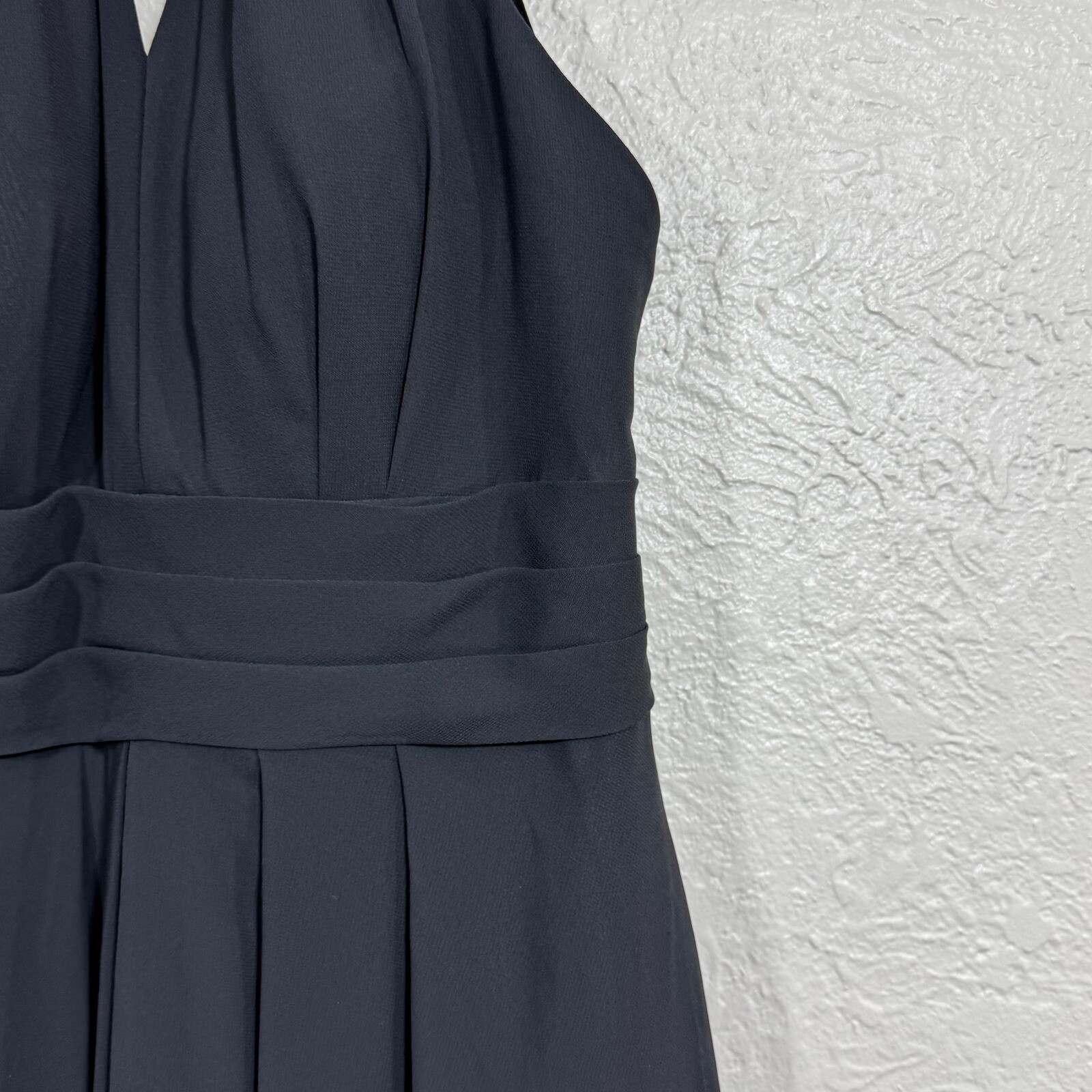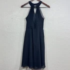 Azazie Kimmy Halter Neck Fit & Flare Dress 6 Pleated Keyhole Midi Formal Brand: Azazie Size: Custom size (Please refer to measurements on tag. Approx a women's size 8) Color: Black Features: Halter neckline, front keyhole cutout, pleated waistband, midi length, back zip Material: 100% Polyester (Shell and Lining) Country of Origin: China Style Name: Kimmy Style Number: 225911 Condition: New with tags with no flaws All purchases are shipped within one business day of purchase. Free returns are accepted for any reason within 30 days of purchase. Approximate Measurements: (according to tag) Bust: 34" Waist: 28.5" Hips: 40" Length: 41" Keywords: cocktail, bridesmaid, classic, sleek, romantic, minimal, semi-formal, elegant