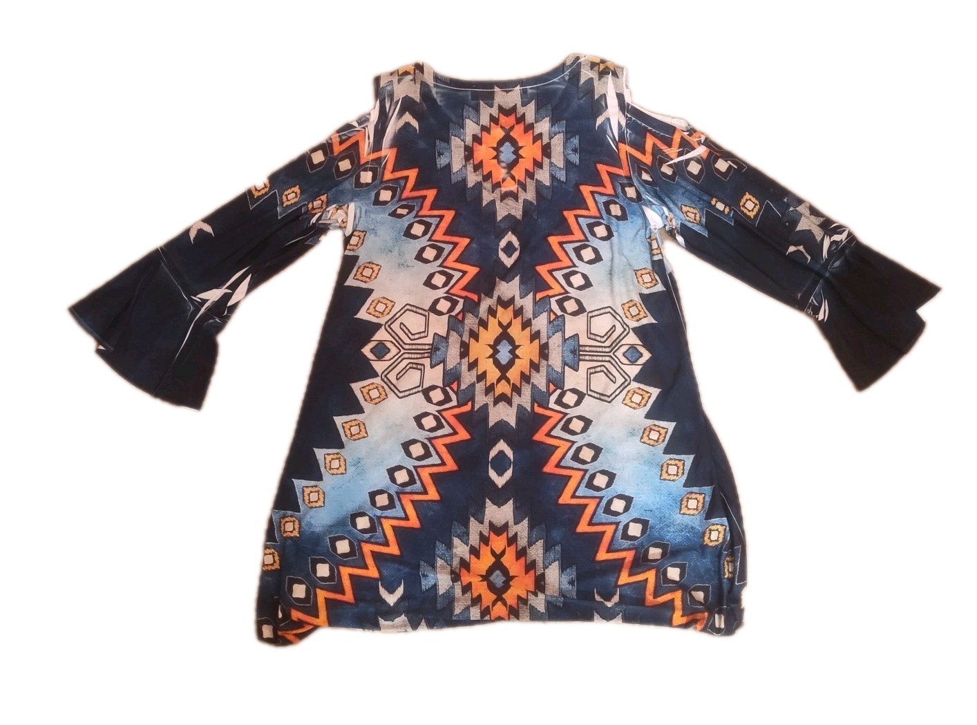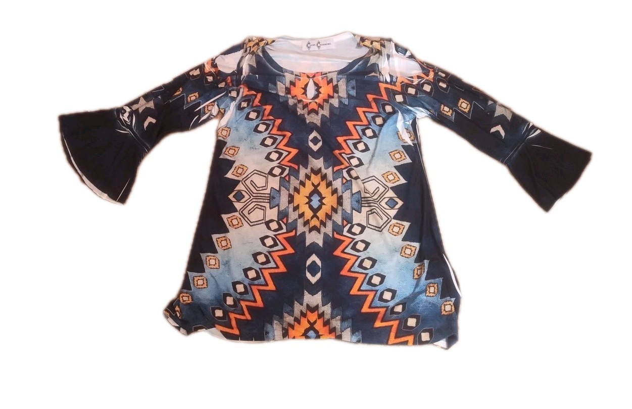 This shirt is in excellent condition! This piece has been properly washed. Smoke free environment. No size tag. See measurements. Pit to Pit 17" Length 29 " Bin cl2
