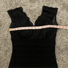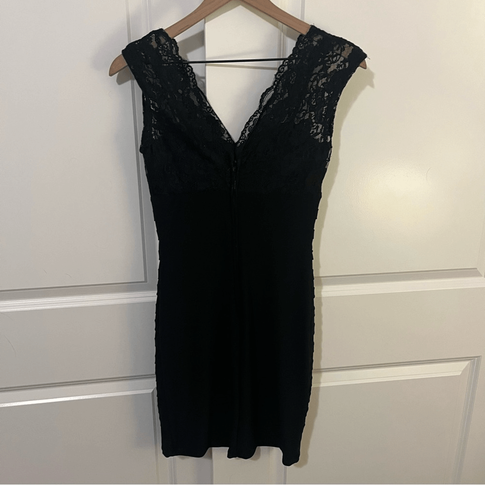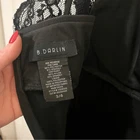 B. Darling black lace dress VGUC Size 3/4 Bidder back zipper Lace across the chest Sleeveless V neck Layered bandage across the body Lace empire waist - Lace overlay on bust Lined Little black dress, sexy, sophisticated