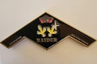 *New* B-21 Raider Stealth Bomber 2 Challenge Coins USAF NORTHROP GRUMMAN CTF 3"x1.5" Bottle Opener: On one side it features the B-21 logo with the squadron patches below it. Different Air Force Specialty Codes surround the outer edge of the coin. On the other side, a skeleton siting on the globe, holding a missile while a B-21 circumnavigates it. The outer edge reads, "Admit nothing, deny everything" This is a 3.5" Challenge Coin that features the American flag in the silhouette of the B-21 On the other side, it reads Praenuntius (Latin for "acting as harbinger") RAIDER and HUC VENIT MALUM A number of translations have come from it, but many of them pretty much say a similar thing in different ways. This mainly includes "here comes evil," but by most indications, including a Latin professor's, the motto is a reference to a quote from Shakespeare's Macbeth: "something wicked this way comes." It also depicts eyes with eagle talons Sold and shipped in The USA