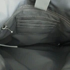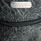 This BAGGALLINI Crossbody bag features a geometric pattern in black and grey nylon, with a front pocket and multiple inner and outer pockets. The adjustable strap has a 14" drop, making it versatile for casual occasions. The hardware is silver, and the lining is gray nylon. Designed by flight attendants, this medium-sized bag is lightweight, water-resistant, and stain-resistant, perfect for carrying essentials with style and convenience.