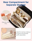 BAGSMART Toiletry Bag for Women, Travel Makeup Organizer, Wide-open Black Product Details Product Dimensions: 9.06 x 5.31 x 4.53 inches Item Weight: 7.4 ounces Department: Women Manufacturer: BAGSMART Country of Origin: China Item model number: BM0108052AN 【Efficient Storage Solution】This makeup bag organizer is designed with multiple compartments. The front compartment is perfect for storing bottles of cosmetics and toiletries, and it also features two storage pockets inside for blushes and lipsticks. The rear compartment is spacious enough to hold large eyeshadow palettes, cushion Foundation, blushes and loose powders. Additionally, the zippered divider pocket can securely store eyeliners, mascaras, lip glazes, and other longer items. The PVC clear pocket is designed specifically for holding makeup brushes, sponges and puffs. 【Quick Access to Items】The BAGSMART travel makeup bag can be unfolded almost 180 degrees, providing a spacious opening for easy access to your cosmetics, toiletries, and other travel essentials. The exterior quick-grab pocket is thoughtfully designed to store small items for touch-ups, such as lip glosses and lipsticks. Measuring 9.0*4.5*4.5 inches, it's perfect for organizing your daily cosmetics and travel essentials for a week's travel! 【Easy-to-Clean Pockets】This makeup travel bag comes equipped with 1 PVC stain-resistant zipper pocket, ideal for storing a full set of makeup brushes, sponges, and powder puffs. A simple wipe-down keeps them clean, eliminating worries about makeup stains. 【Premium Quality】This BAGSMART cosmetic bag is made of water-resistant polyester for excellent durability and protection. This make up bag features custom metal zippers that ensure smooth operation, and a sturdy leather top handle that makes it easy to carry. Its well-organized interior, combined with its fashionable design and portability, make it an ideal choice for a stylish and convenient makeup bag. 【Versatility】With an elegant and charming appearance and available in 5 colours, this large makeup bag serves not only as a travel companion but also as a versatile toiletry bag, travel wallet, tech accessory organizer, travel accessory bag, or daily storage pouch. These cosmetic bags for women are perfect gifts for Women's Day, Valentine's Day, birthdays, anniversaries, Mother's Day, and other holidays.