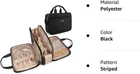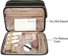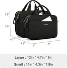 BAGSMART Large Toiletry Bag, Travel Makeup Organizer Large, Black Product Details Product Dimensions: 12.6 x 9.1 x 4.3 inches Item Weight: 1.1 pounds Department: Womens Country of Origin: China Item model number: BM0108133 Large Capacity-12 x 4.7 x 9 inches. Multi-functional toiletry bag can hold your full-sized toiletries, cosmetics, lotions, shampoo, skin-care products and other travel accessories you need well-organized. Special Design- Double side full open design keeps cosmetic bottles can stand upright in the middle compartment. Both sides pockets are design for makeup brushes, eyeshadow palette and other cosmetics. Easy to Access- Features dual zippered, large opening, making it quickly reach into the main compartment.Simply pull on the connected zip puller for full exposure. Visible Design-The compartment is visible and the inner PVC pocket which is easy to clean can keep the wet/dry items separated. Occassion - It can be a toiletry bag or cosmetic bag for daily use, or a travel toiletry organizer for family use. BAGSMART Large Toiletry Bag Looking for a compact, easy way to tote your toiletries? BAGSMART Travel Toiletry Organizer is the perfect travel companion! Unlike bulky, heavy bags that add to your burden, our makeup bag design with large capacity, mulitiple pockets can store all your cosmetics well-organized. Spacious Compartment Large main compartment with several mesh pockets and elastic bands, which can help hold your toiletries and cosmetics well-organized. The inner compartment with PVC is visible and easy to clean. Full Open Design Dual zippered, large opening design allows you to more easily access to all your toiletries.Simply pull on the connected zip puller for full exposure. Keep Bottles Upright The main compartment is large enough to hold 5-9 bottles. When you fill the main compartment with all your stuff, the bottles and bag could stay upright. Both Sides Pockets for Travel Accessories The small pockets with elastic bands and pvc pockets on both sides fits for makeup brushes, storing small cosmetics, such as toothbrushes, toothpastes or eyebrows and holding them tight.
