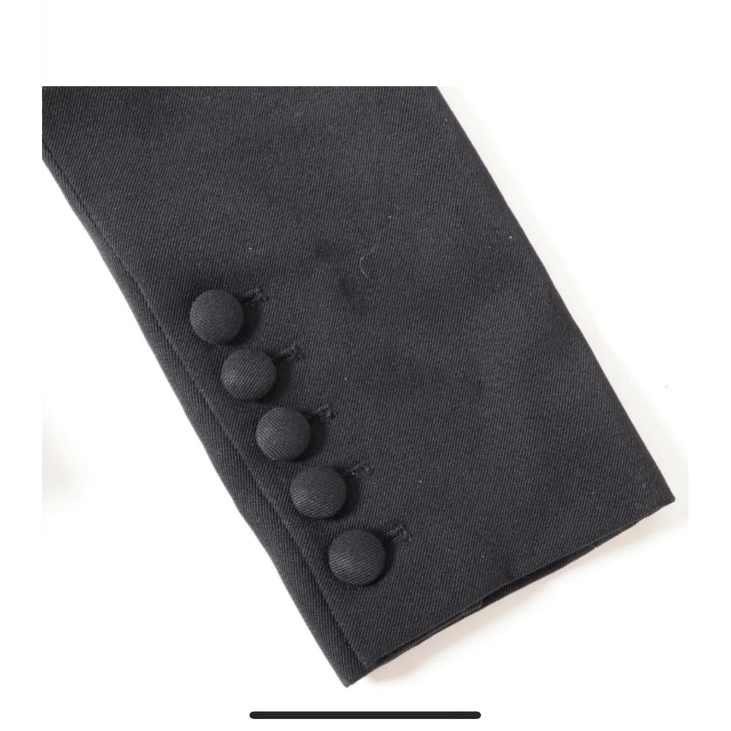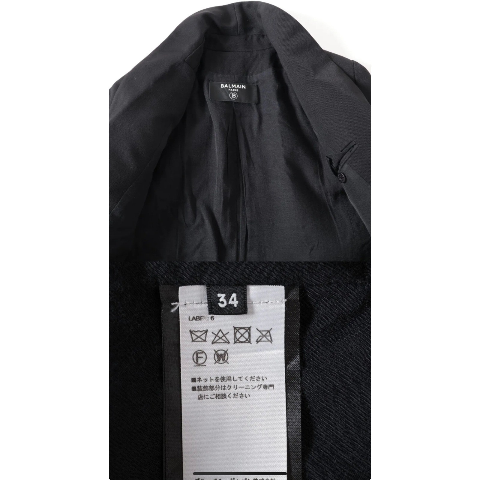 The Balmain Wool Jacket in Black is a statement of timeless elegance and refined tailoring. Crafted from luxurious wool, the jacket features a structured silhouette with classic collar and front pockets that add both functionality and style. The sleek black hue enhances its sophisticated appeal, while the impeccable construction reflects Balmain's signature attention to detail and couture- inspired design. Type: Blazer Outer Shell Material: Wool Style: Basic Jacket Department: Women Lining Material: Viscose Accents: Button, Logo Features: Pockets, Collared, Lined, Single-Breasted Pattern: Solid Season: Fall, Spring Closure: Button Occasion: Workwear, Business, Formal Sleeve Length: Long Sleeve Fit: Slim Keywords: balmain, paris, black, shawl collar, single button, blazer, jacket, womenswear, tailored, sophisticated, elegant, workwear, evening wear