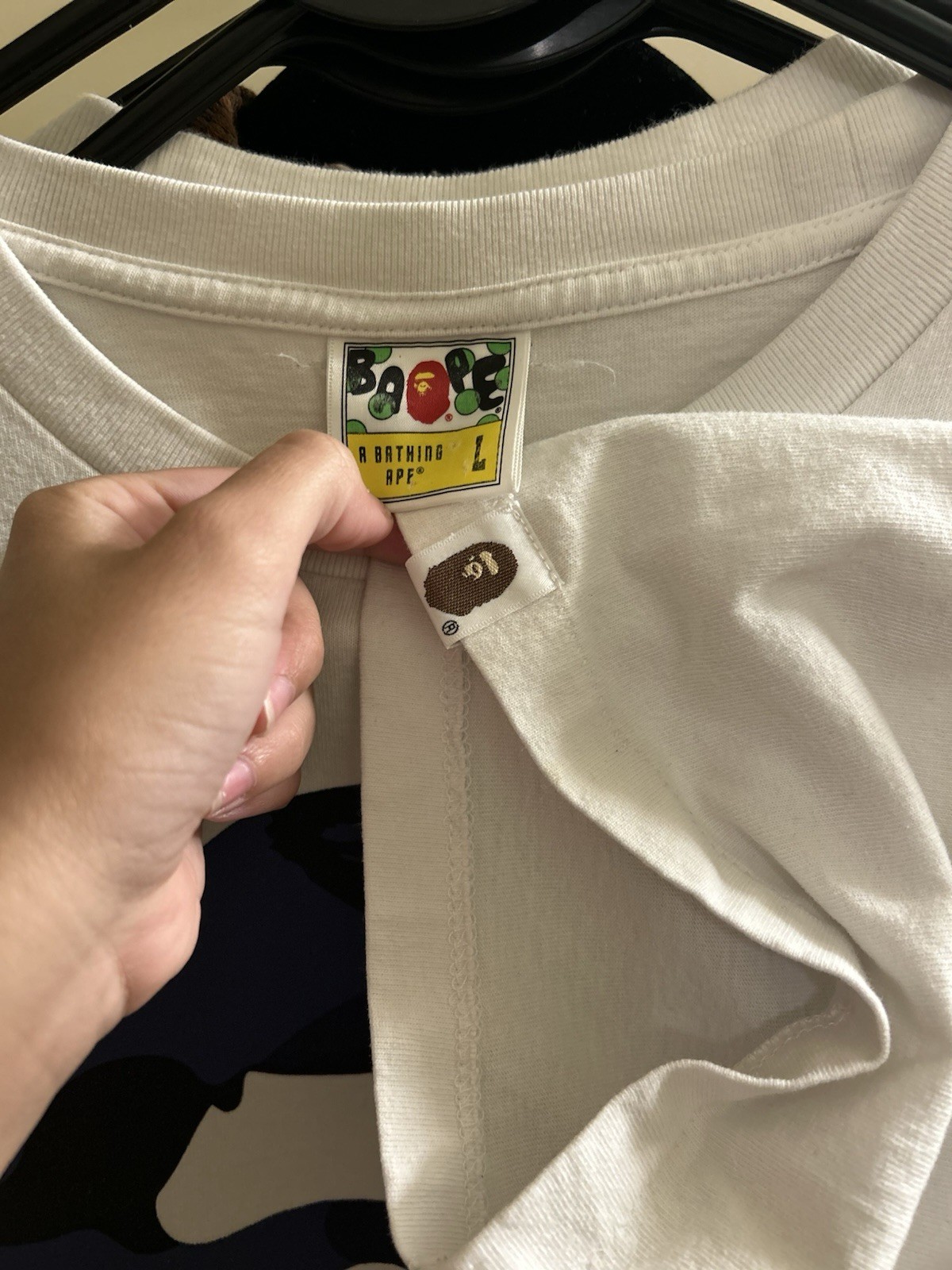BAPE A Bathing Ape Camo Big Ape Head T- Shirt Sz. Large L White Blue Crew Neck